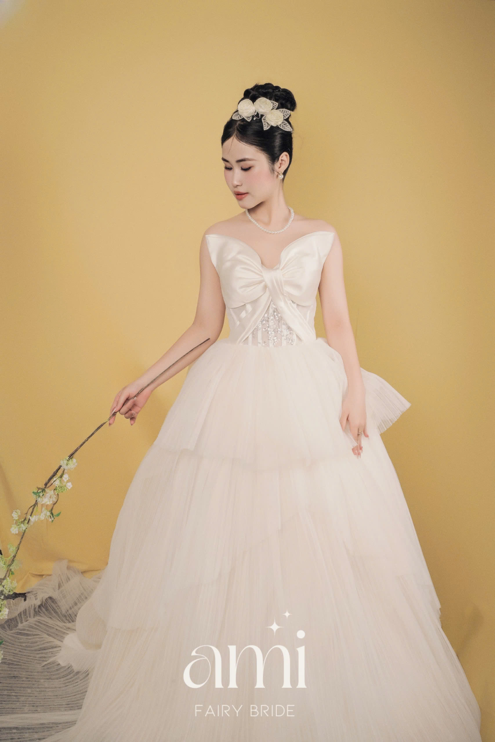 Combo thuê váy cưới cực ưu đãi tại Ami: 8.600.000 VND - 02 váy dòng Signature/ Vintage/ Event - 01 áo dài cô dâu (ưu đãi khai trương) - Up lên dòng Premium +2.000.000 VND/váy - Miễn phí thuê veil, cài tóc hoặc bờm - Tặng voucher 50% thuê vest, tuxedo - Tặng 01 bộ nailbox Nzim Beauty Room - Tặng voucher trị giá 900.000 VND cho 2 suất gội thư giãn Nzim Sleep tại Nzim Beauty Room